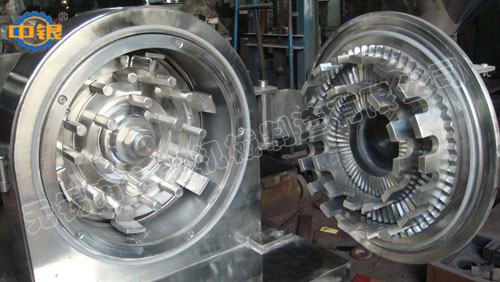 本機適用于活動齒盤和固定齒盤間的相對運動,使被粉碎物經齒沖擊、摩擦及物料彼此間沖擊而獲得粉碎。且20型、40型、60型全部按"GMP"標準設計,整機全部用不銹鋼材料制造。30型及40型粉碎室可配水冷卻夾套、該機已達國際先進水平。